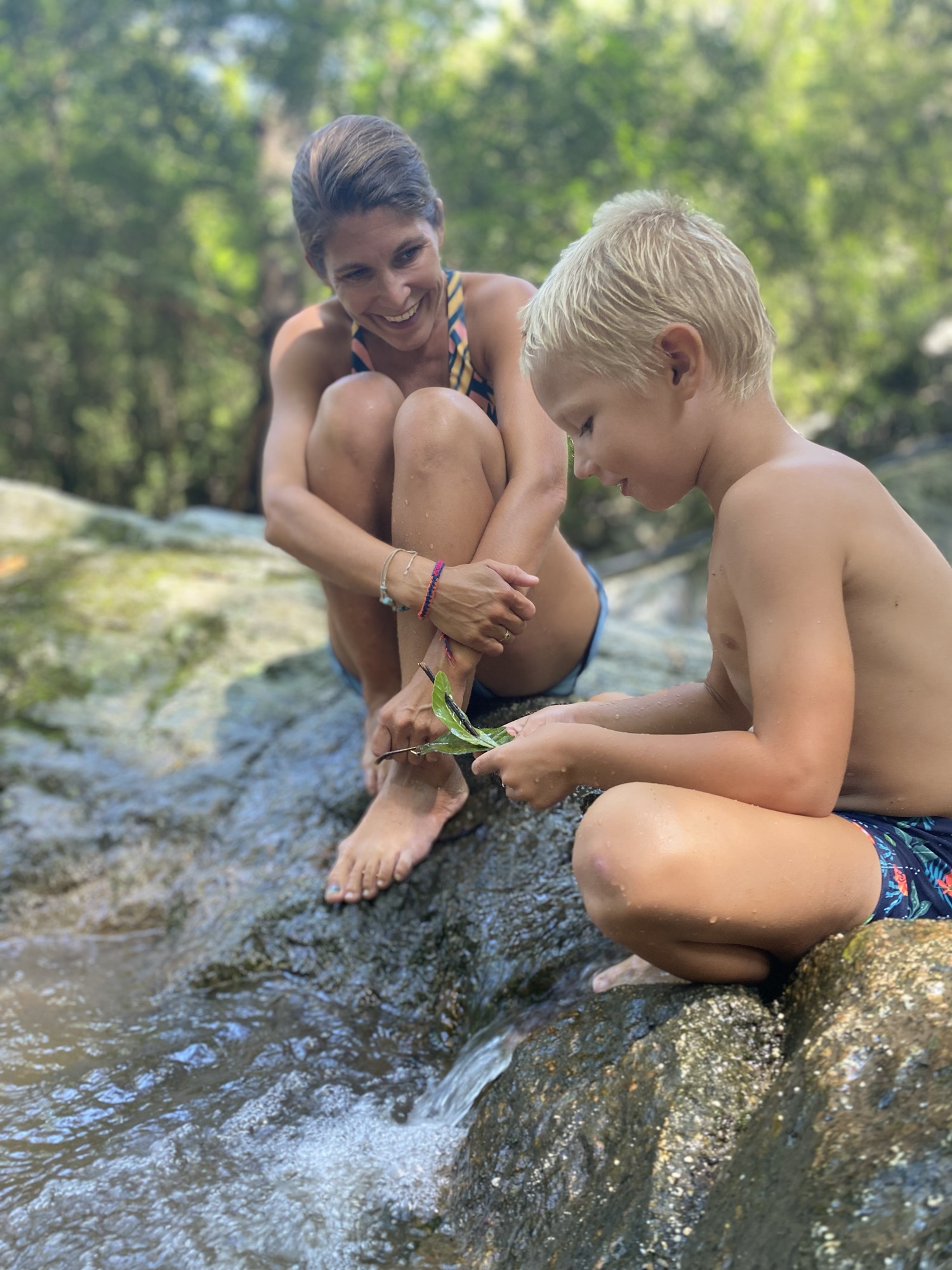 Mijn gedachten voeren me terug naar het koele rivierwater van de watervallen in de Paso del Mango. Van een blaadje en een takje maakten Bent en Bruis een bootje waar ze mee speelden in de stroompjes tussen de keien. Er is maar zo weinig nodig om een mens gelukkig te maken. Zij met hun ‘bootje’ en ik met de aanblik van onze twee kleine Tarzans in de waterval.