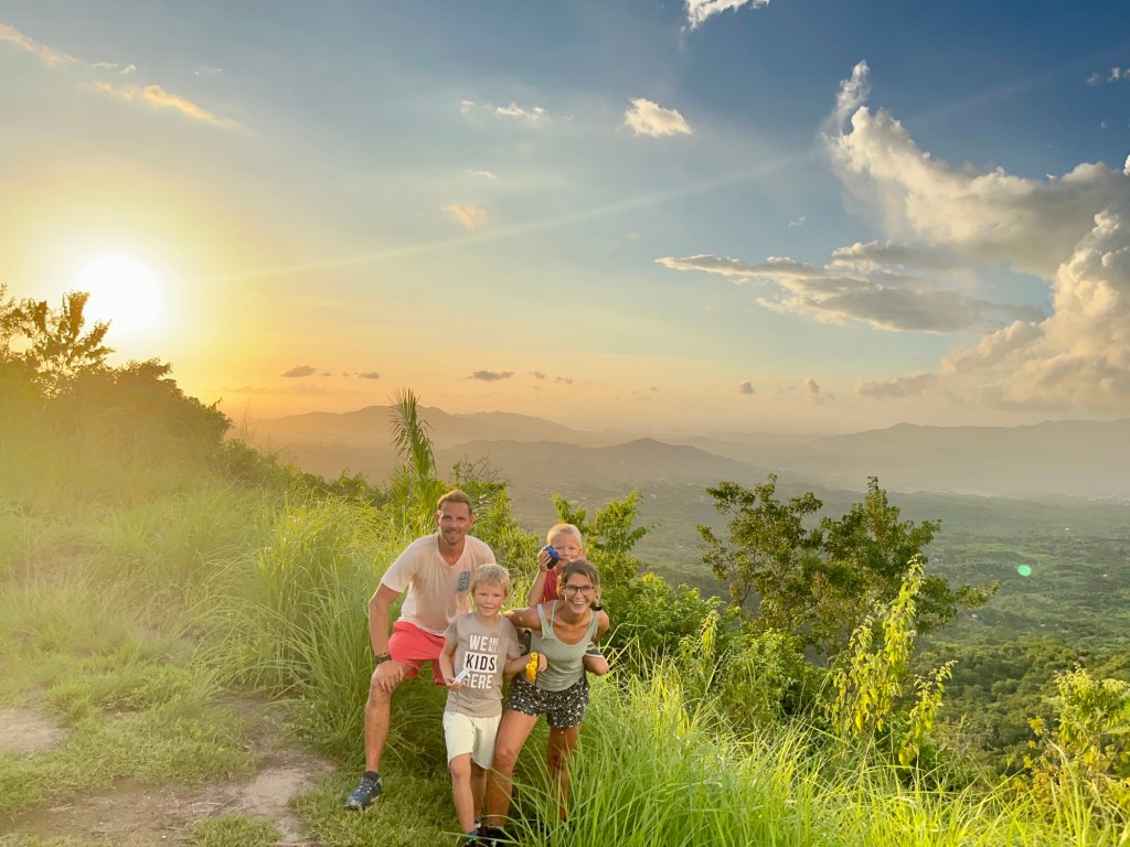 Het uitzicht was prachtig, vanaf de bergtop hadden we een 360 graden uitzicht. In de verte zagen we de stad met daarachter de zee, achter ons prikten de pieken van de Sierra Nevada de Santa Marta in de donker wordende hemel. Het ‘blauwe uur’ voor zonsondergang gaf de lucht een zachte mystieke kleur. Een bui kwam langzaam naar ons toe drijven en trakteerde ons op een regenboog. We namen alle vier het moment in ons op alvorens we de terugweg begonnen.