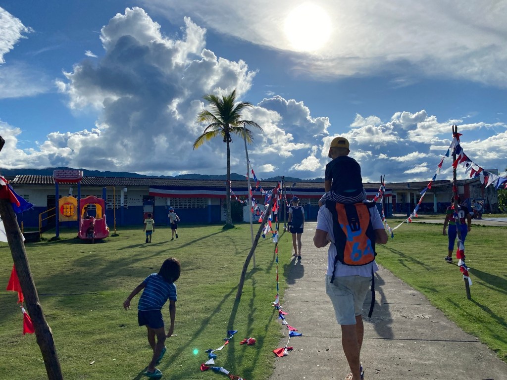 Desalniettemin lijkt het erop dat niet de Guna’s de grote trekpleister zijn. Overal waar we langslopen, hangen families uit het raam of komen naar buiten lopen. Mannen komen ons de hand schudden, kinderen roepen ‘hello’ en ‘how are you’ en vrouwen vragen hoe oud onze jongens zijn. Ze lachen van verbazing als we vertellen dat Bent 7 is en Bruis 4; zelfs onze kinderen zijn in hun ogen reuzen. Met zijn blonde haar en blauwe ogen willen de Guna’s graag met Bruis op de fotol. De jongens vinden het eerlijk gezegd allemaal erg overweldigend. Als een Guna-vrouw aan Bruis trekt om met hem op de foto te gaan, is dat de druppel. Bruis zet het hard op een huilen.