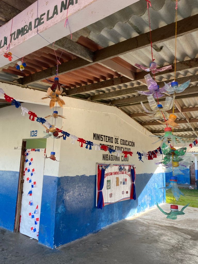 Nadat we ook de school – die vanwege het weekend gesloten is – bezoeken, vinden we een heus barretje waar we ons tegoed doen aan een koud drankje. De rondleiding zit er bijna op en het is de hoogste tijd om de Congresso te bezoeken. Dat is de eilandraad bestaande uit drie wijze mannen die het dorp besturen. We lopen achter de ‘gids’ aan naar een grote rietgedekte hut in het centrum van het eiland, aan een stoffig plein dat tevens dienstdoet als volleybalveld. Niet anders dan op een zaterdag in Nederland wordt er fanatiek gevoetbald en volleyballd door de Guna’s. We slalommen tussen het publiek door en bukken ons als we de Congresso binnenstappen. Binnen staan vele houten banken met in het midden drie hangmatten waarin de dorpsoudsten liggen. We worden gemaand stil te zijn als een van hen het woord neemt. Er wordt voor ons vertaald dat we welkom zijn. De leider vraagt waar we vandaag komen, hoe we heten en hoe oud we zijn. Dan wordt er uitgelegd dat we ankergeld moeten betalen aan de community. Dat is prima, geven we aan en een bonnetje wordt uitgeschreven. Ook worden we uitgenodigd om de dag erna een Chicha Fuerte ceremonie bij te wonen. Chicha is een zelfgebrouwen drankje met hallucinerende werking. We bedanken de raad voor de ontvangst en vervolgen onze weg terug naar de dinghy’s.