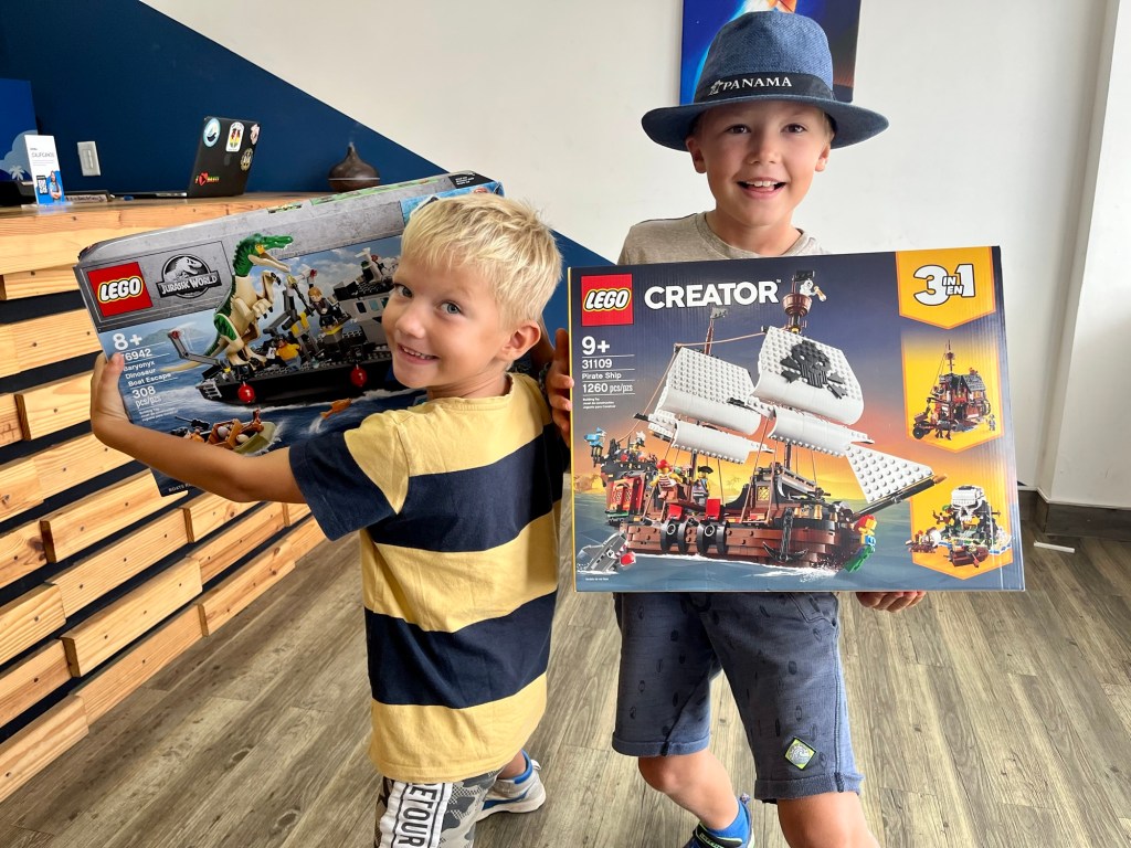 Met zijn vieren brachten we vier lange middagen door in de supermarkt. Voor meer dan 2.000 dollar kochten we proviand dat ik vervolgens een plek moest geven aan boord. Onder de vloerplanken, onder de zittingen van de bank, en achter deuren. Geen plekje blijft onbenut op de 12,5 meter die onze boot lang is. Toen de boot teveel overhelde naar stuurboord, kon ik alles weer openhalen om de zware producten als conservenblikken en meel te verplaatsen naar bakboord. Drie grote tassen vol aan koek, chips en andere snacks plaatsten we achter een net op de rechterhelft van Bent zijn bed. Met de jongens bezocht ik de tandarts en vulde de boordapotheek aan. We bestelden pakketjes met speelgoed voor de komende oversteken en voor verjaardagen en kochten een nieuwe voorraad uv-shirts en zwembroeken hij de Decathlon in Panama City. En toen, na drie weken doorwerken, kwam het eind van de to do-lijst in zicht.