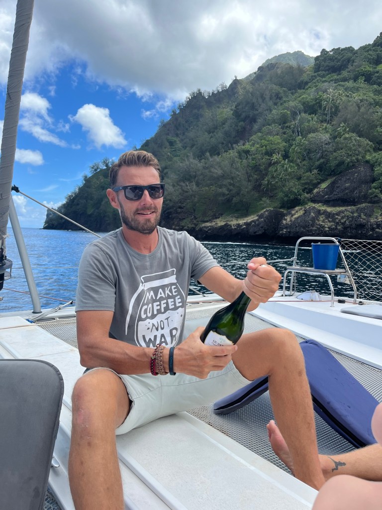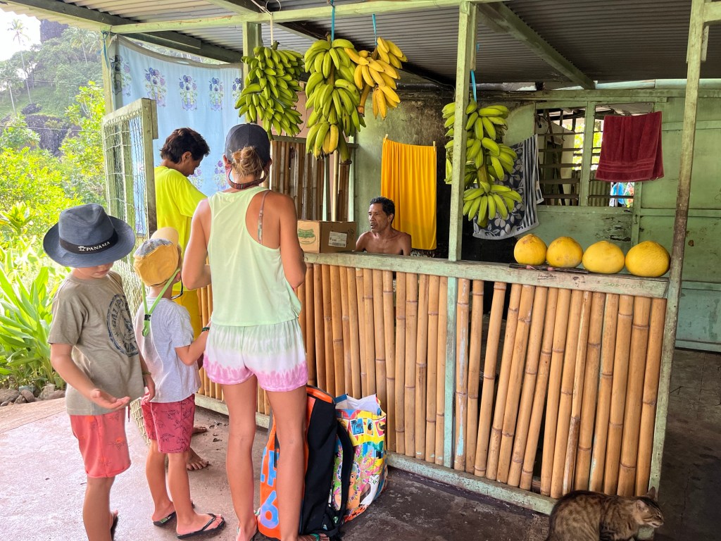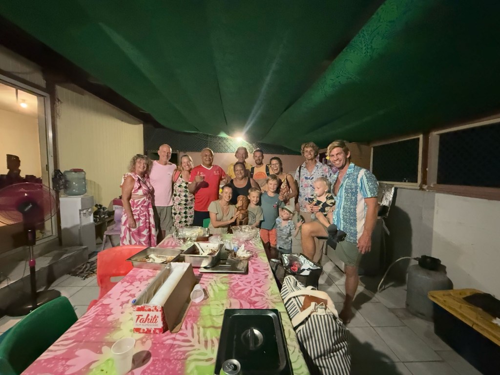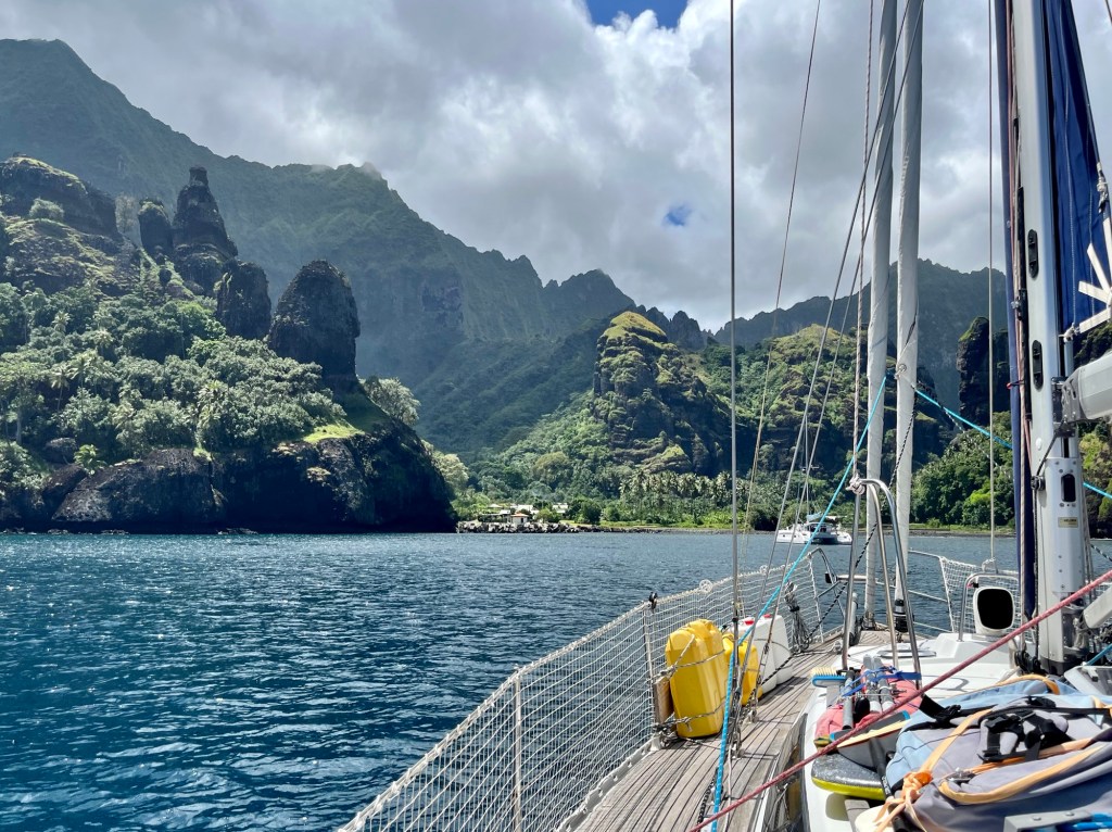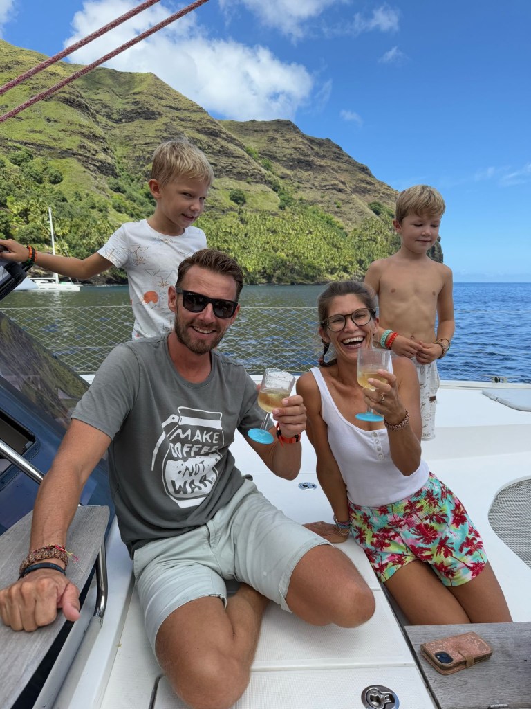De daaropvolgende dagen toasten we met mede-cruisers van de Pinnacle op de succesvolle oversteek, wandelen we naar een tientallen meters hoge waterval, worden we bij locals uitgenodigd voor een diner en ruilen we verzorgingsproducten en armbandjes tegen meer fruit. We kunnen hier geen cash krijgen en de ruilhandel floreert. Groente is echter niet te krijgen op het eiland en de bodem van onze voorraad is in zicht. Het is dus vooral blikvoer dat de pot schaft. Morgen zullen we dan ook met weemoed ankerop gaan, op weg naar Hiva Oa waar we inkopen kunnen doen en waar we de Nederlandse cruisers van de Moana Nui en de Strider zullen terugzien. Daar kijken we dan weer erg naar uit.
