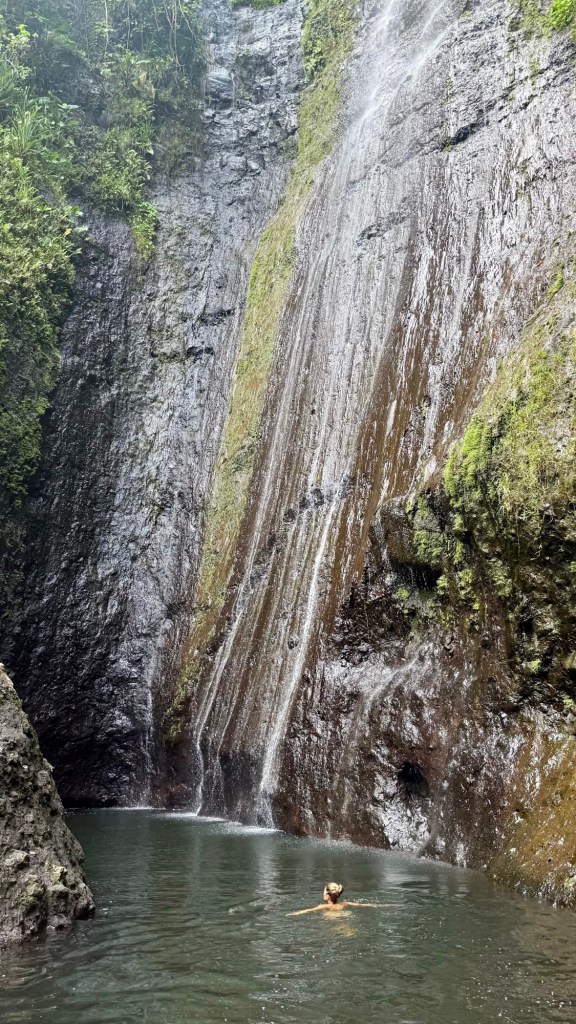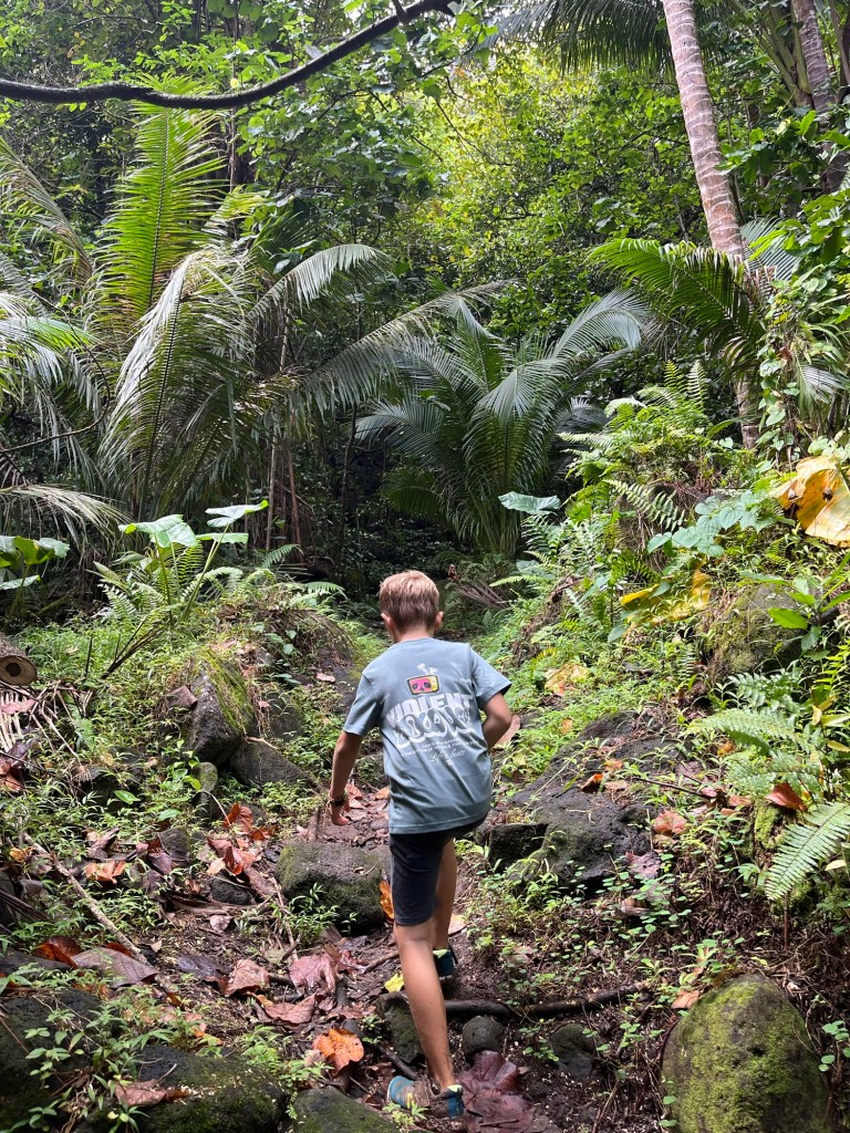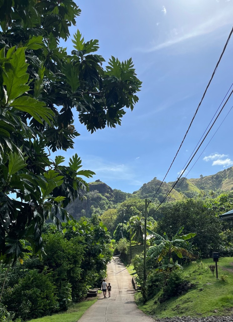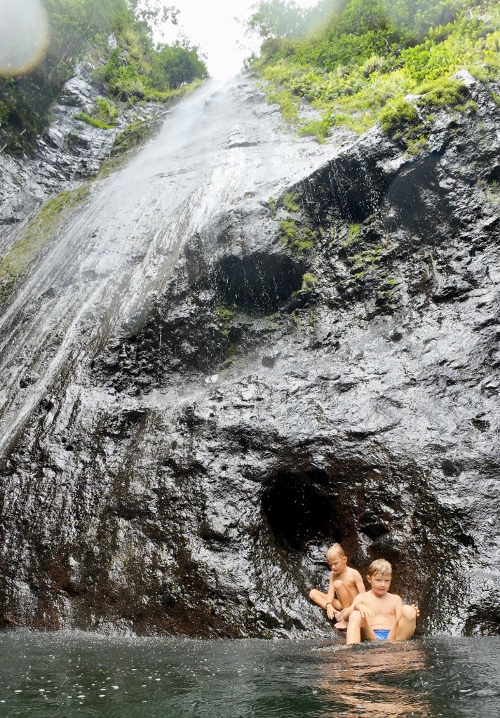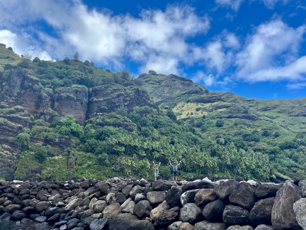 De daaropvolgende dagen toasten we met mede-cruisers van de Pinnacle op de succesvolle oversteek, wandelen we naar een tientallen meters hoge waterval, worden we bij locals uitgenodigd voor een diner en ruilen we verzorgingsproducten en armbandjes tegen meer fruit. We kunnen hier geen cash krijgen en de ruilhandel floreert. Groente is echter niet te krijgen op het eiland en de bodem van onze voorraad is in zicht. Het is dus vooral blikvoer dat de pot schaft. Morgen zullen we dan ook met weemoed ankerop gaan, op weg naar Hiva Oa waar we inkopen kunnen doen en waar we de Nederlandse cruisers van de Moana Nui en de Strider zullen terugzien. Daar kijken we dan weer erg naar uit.