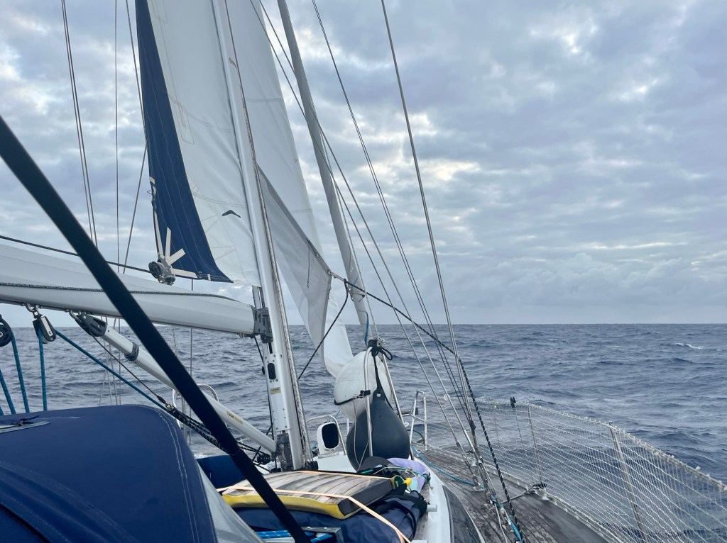 Zo snel als de omstandigheden gisteren verslechterden, zo snel werden ze vandaag beter. Bij het krieken van de dag verdreef de zon langzaam de wolken. De opstekende passaatwind vulde onze zeilen en de zee hervond haar ritme. Aan de hemel arriveerden de passaatwolkjes, als wattenbolletjes die verspreid over de hemel geplakt zijn. Dit is het…