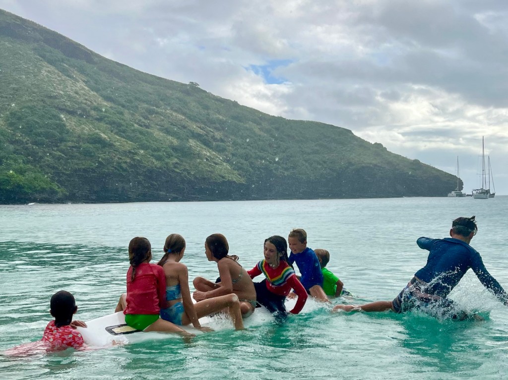 Op Tahuata was het een samenkomst van familieboten. Er lagen zeker acht boten met kids aan boord en dat maakte dat er veel samen gespeeld werd. Dagelijkse bodyboard en Lego- sessies waren een feit. Het maakte tevens dat met name Bent grote stappen heeft gemaakt in zijn Engels. We hebben ervaren dat Engels les geven moeizaam is. De jongens spreken dan nauwelijks terug naar ons. Maar al spelend gaat het vanzelf en bovendien is het leren op die manier veel leuker! Dat is ook hoe we het onderwijs tijdens deze reis voor ons zagen. Onderzoekend leren van de dagelijkse ervaringen.
