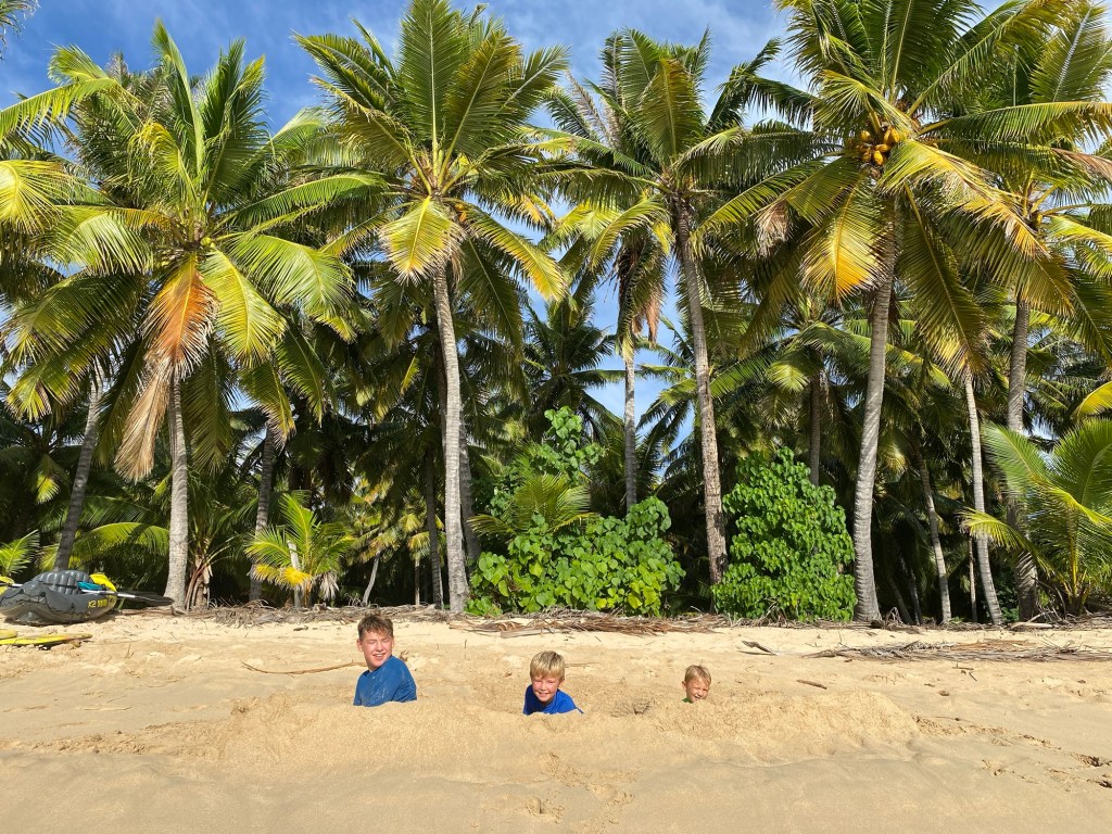 Als je in de hemel op aarde belandt, staat bloggen even niet bovenaan de lijst. Een inhaalslag dus over achteruit inparkeren, peulenschillen, vergezichten, mini’s, tiki’s en manta’s. En over dat ene hachelijke moment, een wake-up call. Een haai? Ja, dat ook!
