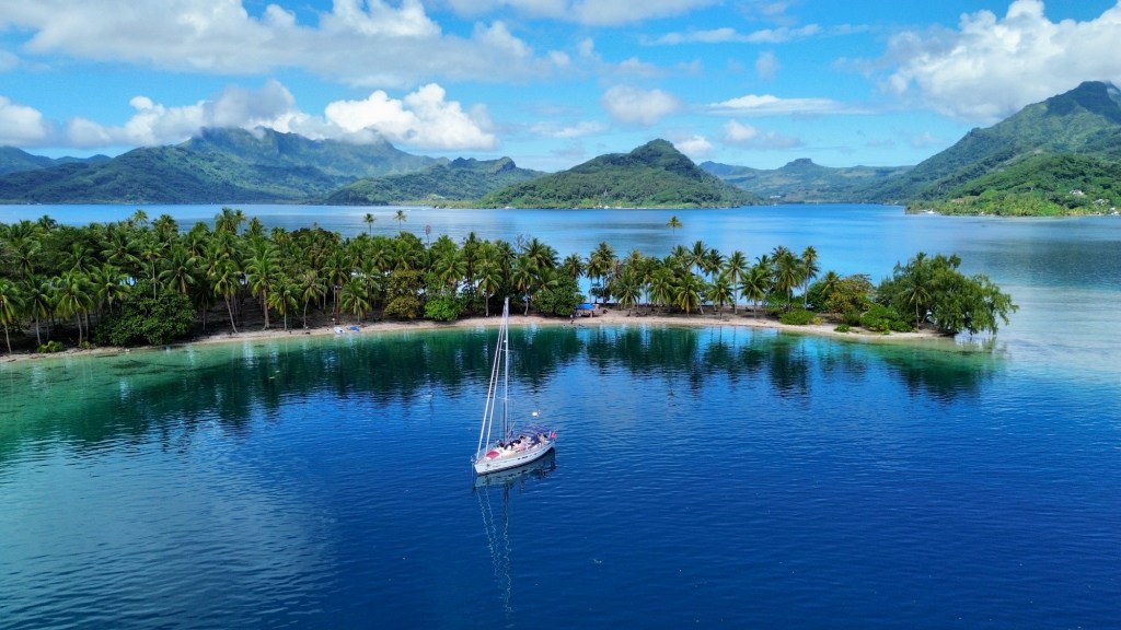 Sinds Corona is er een omslag geweest in de gastvrijheid van de inwoners van met name de Society-eilanden ten opzichte van cruisers. Zo zijn de ankerplekken aan banden gelegd. Ook mogen we niet overal aan land omdat stranden veelal privé zijn. Helaas komen er ook steeds meer diefstallen voor van bijvoorbeeld buitenboordmotoren. Onlangs heeft een boze inwoner hier nog een dinghy lek gestoken van een cruiser. We nemen de dreiging dus zeker serieus. De ochtend erna verplaatsen we naar het dorp. De oceaandeining is inmiddels iets lager en we liggen er verrassend rustig. Bij de zogenaamde yacht club, een bar aan het water, eten we de lekkerste hamburger in tijden en kijken hoe de zon in het water zakt. Morgen zetten we zeil naar Raiatea.