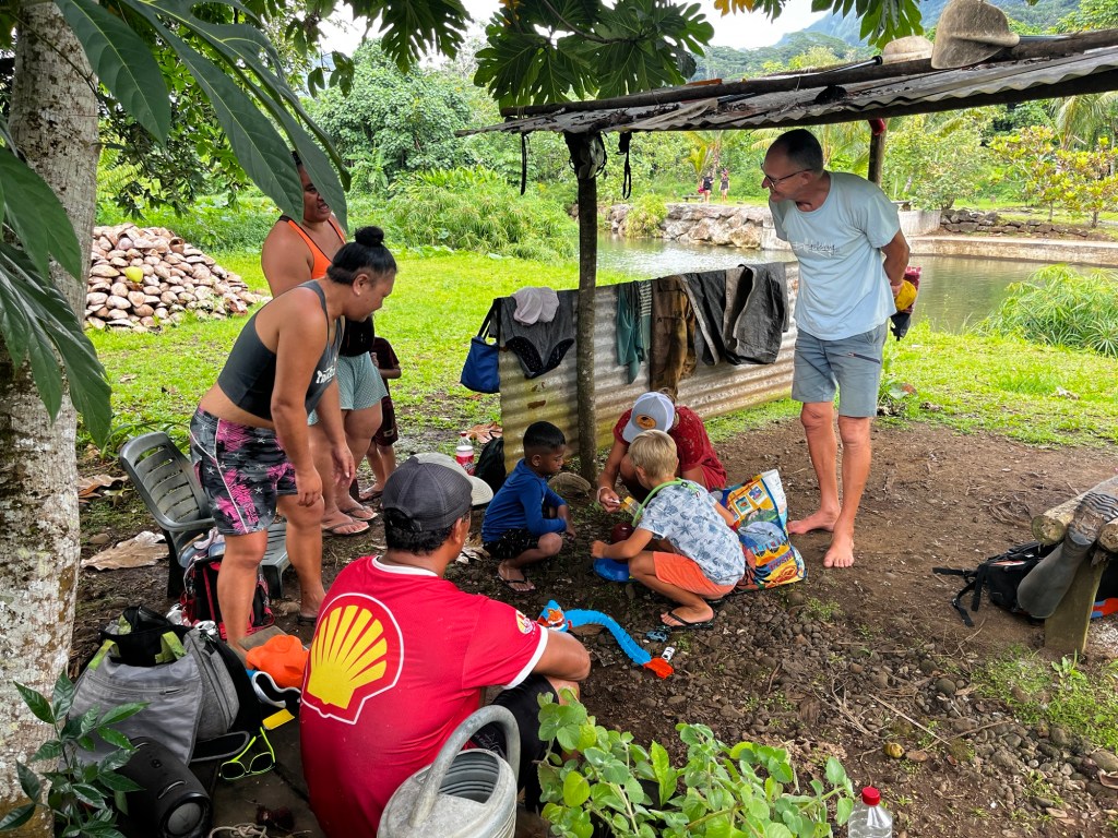 Wanneer de zon begint te zakken, hijsen we het anker en varen naar Baie Faaroa voor een weerzien met Richard en Marianne van Moana Nui. Morgen staat een dinghy-tocht over de Faaroa-rivier en een bezoek aan de vallei op de planning. De geur van tropische bloemen vult onze neus terwijl we door de botanische tuin wandelen op weg naar het Faaroa Mystery House. Daar worden we betoverd door optische illusies die ons doen afvragen wat onze ogen zojuist hebben gezien. Op de terugweg stoppen we bij lokale boer André die ons een gratis rondleiding geeft door zijn tuin, die hij al meer dan 30 jaar in zijn eentje onderhoudt. We proeven vruchten die we nog nooit eerder hebben gezien en ruiken kruiden waarvan we het bestaan niet kennen. In ruil daarvoor geven Bent en Bruis wat van hun speelgoed aan de kleinkinderen van André. De glimlach op de gezichten van de kinderen is onbetaalbaar 🙏.