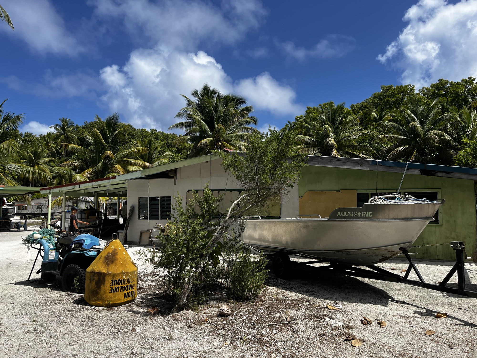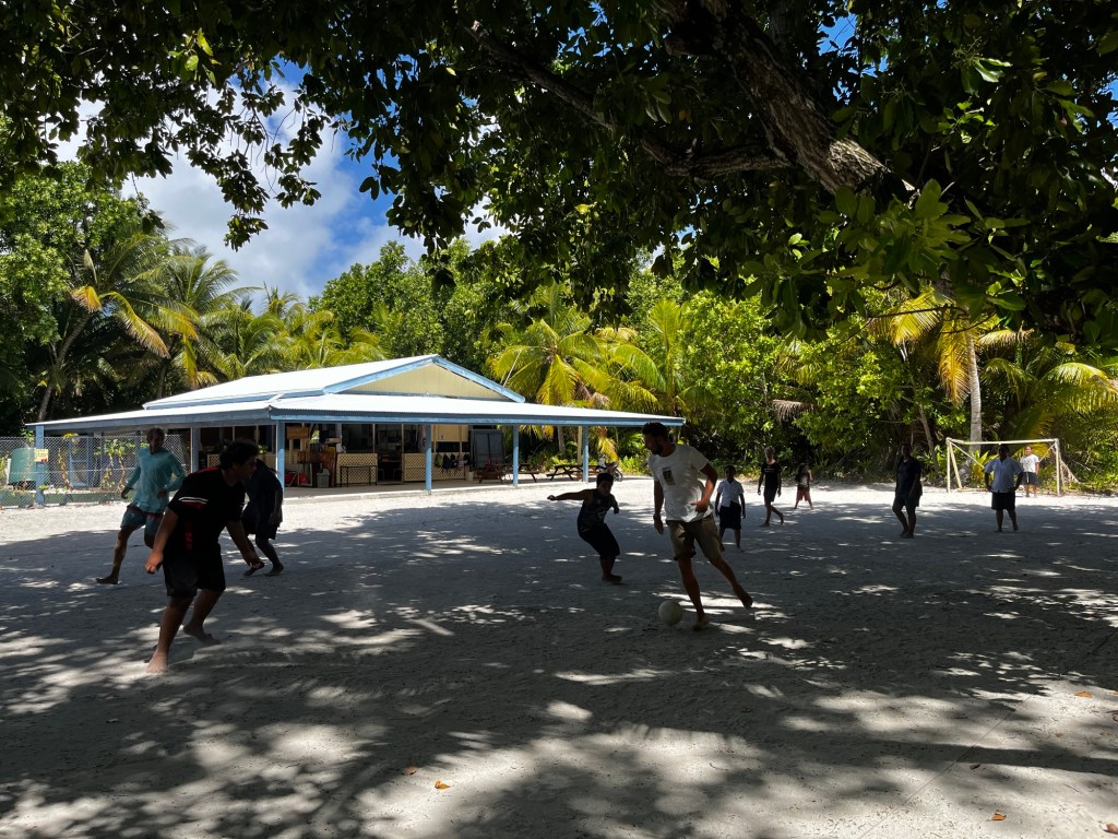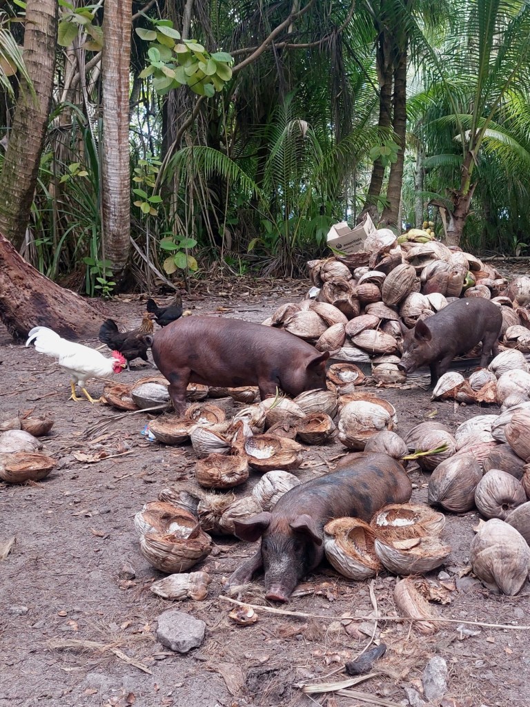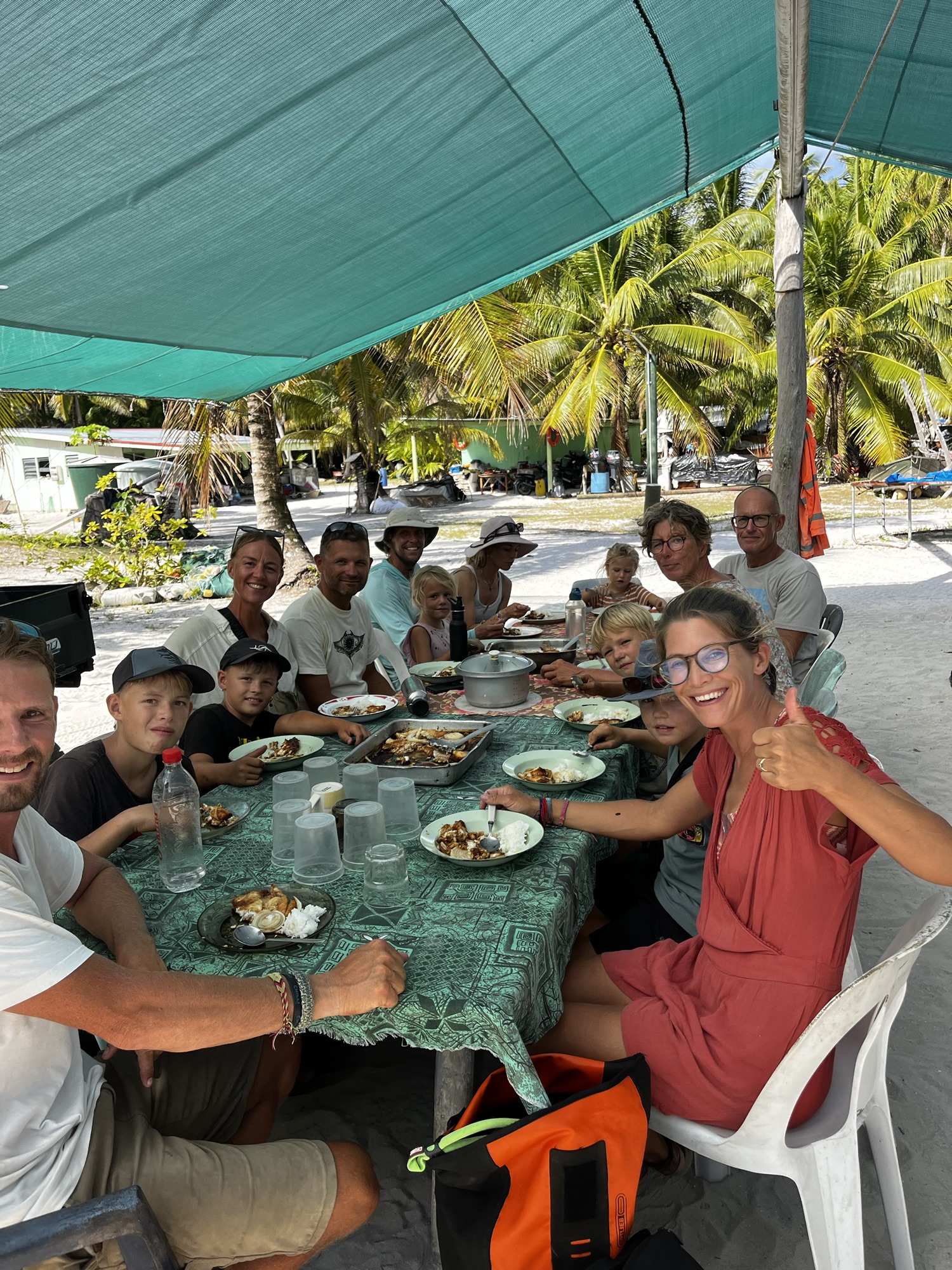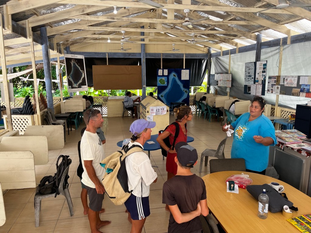 Op Palmerston word je niet zomaar een bezoeker, maar onderdeel van een familie. Elk jacht wordt toegewezen aan een host-gezin die je ophalen en je meenemen in hun dagelijks leven. Je eet met hen, hoort hun verhalen en krijgt een uniek inkijkje in hun kleine gemeenschap. In ruil voor hun gastvrijheid geef je praktische giften. Voor vertrek uit Aitutaki hadden we mailcontact met de ‘administrator’ op Palmerston en vroegen we wat we konden meebrengen. We kregen een boodschappenlijstje: gloeilampen, vliegenbestrijding, elektrolyten, benzine, groenten en fruit.