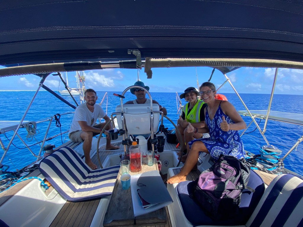 “Alpha Echo, Alpha Echo, Alpha Echo, this is sailing vessel Le Tournesol. We are approaching Palmerston. Over.”
