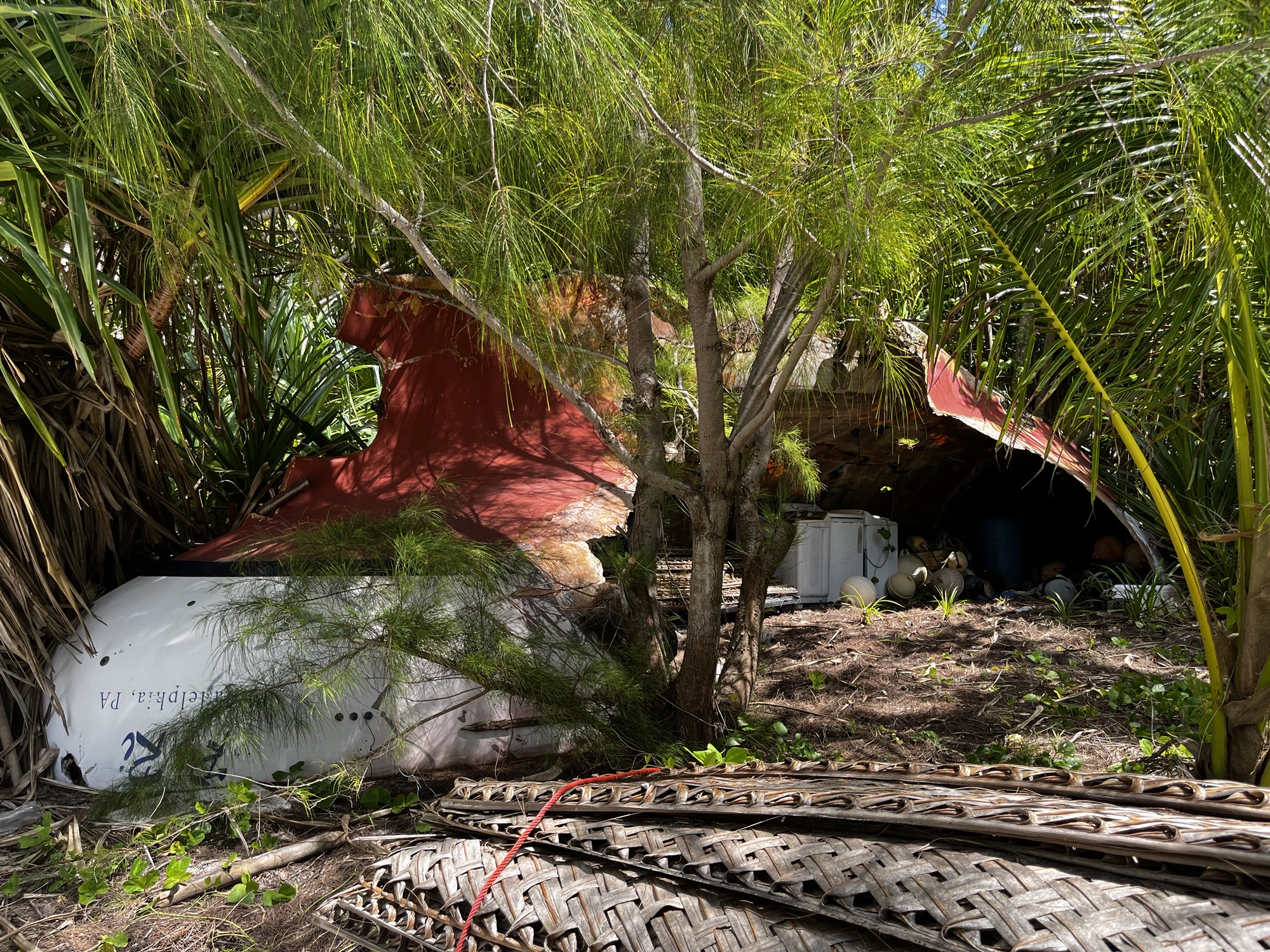Omdat er een zeldzaam weervenster was, lagen er meerdere boten, waaronder Leia en Moana Nui. Samen voeren we met Edward door de branding naar het eiland. Julianna, een jonge Marsters-vrouw van 25 die het eiland trouw is gebleven, verzorgt een rondleiding. Ze noemt zichzelf een ‘old sister’ omdat ze nog geen partner heeft gevonden: “I’m looking for the complete package.” Dat kan weleens lang duren, denk ik, de enige bezoekers hier zijn immers zeilers.