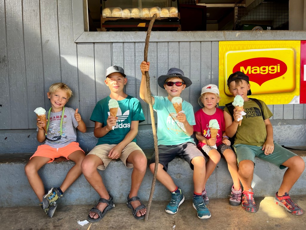 De jongens hebben de tijd van hun leven. Samen met Storm, Sejer en Liv beleven ze elke dag nieuwe avonturen: van een dood varken dat voorbijdrijft tot hutten bouwen met takken en palmbladeren, en van krabben vangen tot heuse stokgevechten in een zelfgemaakte arena onder de broodvruchtbomen achter de kerk. Het leven is één groot feest en de kinderen vieren het maximaal.