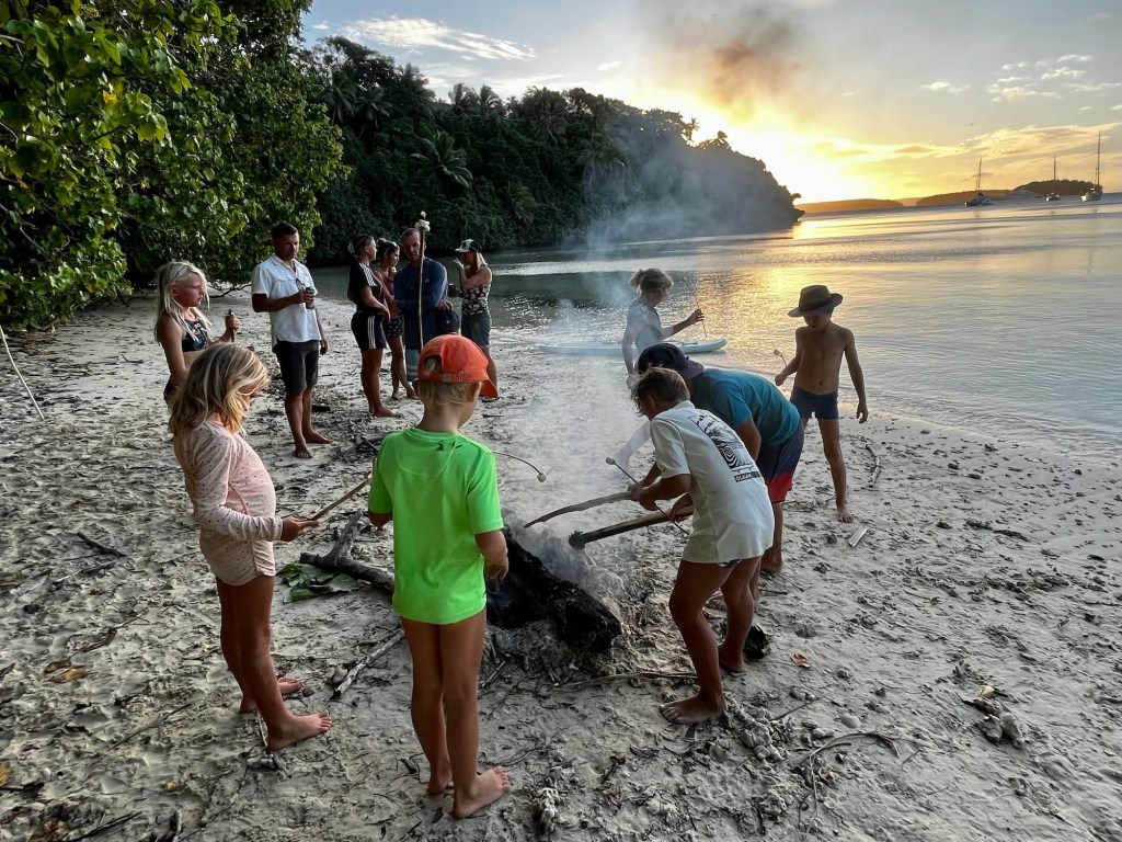 Onze tijd begint te dringen. Australië lonkt, met nog enkele tussenstops onderweg. Het afscheid komt dichterbij. Nog een laatste dag struint team Leia-Tournesol het strand af. Een laatste keer restaurantje spelen met kokosnootschalen, schelpen en zand. Een laatste keer krabben vangen, vallen zetten, een kampvuur met marshmallows. Een laatste proost met Stine en Michael op de herinneringen, en op de zeemijlen die nog voor ons liggen.