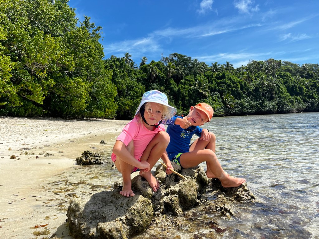 In Maurelle Bay vinden we rust en een uitgestrekt strand. Het is de plek waar we de meeste tijd in Tonga zullen doorbrengen. Na school spelen de jongens met de kinderen van de Leia op het strand. Wij blijven achter aan boord; dat is wennen. Voor het eerst zijn de jongens urenlang alleen op pad. Onwennig proberen Leon en ik van de stilte te genieten. Ongedurig vul ik de tijd met wat huishoudelijke taken en begin ik aan de voorbereidingen voor de oversteek naar Australië. De boot moet aan allerlei eisen voldoen: een schoon onderwaterschip, vrij van ongedierte, niets mag mee de grens over.