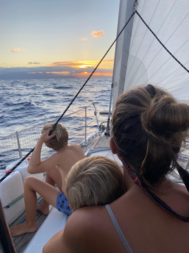 Maar hoe vaak zulke momenten zich ook voordoen, het wordt moeilijker om er echt van te genieten. Daartegenover staan het misselijk wakker worden, telkens weer; het voortdurende geslinger dat het leven aan boord beperkt tot het strikt noodzakelijke. Koken en afwassen worden een kwelling waarvoor ik telkens moed moet verzamelen. Het gewekt worden uit een diepe slaap voor de nachtwacht. Het gevoel de jongens meer aandacht te willen geven, maar het simpelweg niet te kunnen opbrengen.