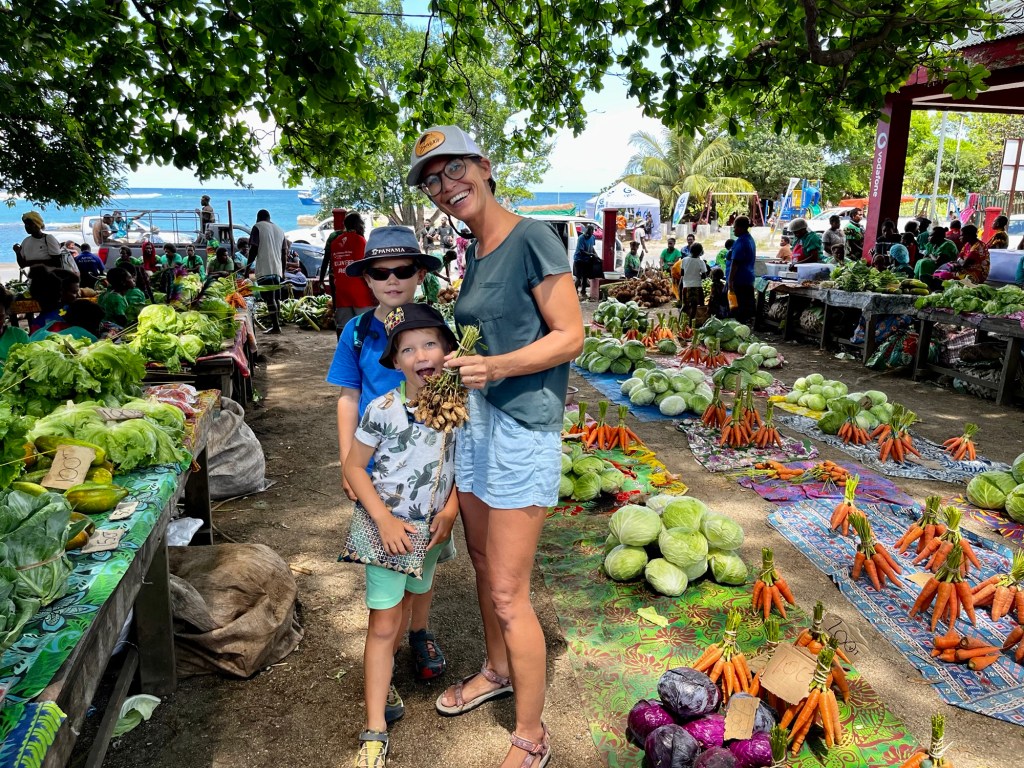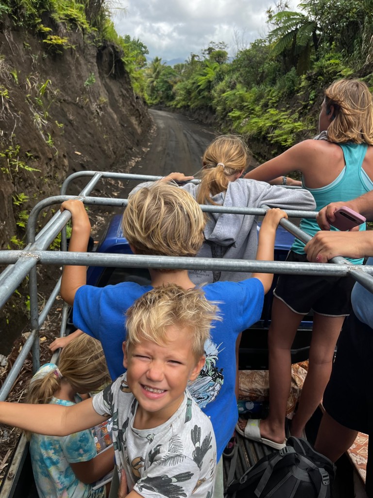 In Fiji trakteerden we onszelf op een luxe jachthaven: met zwembad, douches die niet zouden misstaan in een villa en zelfs een massagesalon. De jongens waren een week lang niet uit het zwembad te krijgen! In Savusavu ontmoetten we na jarenlang online contact Humberto van den Broek. Samen doorkruisen we het eiland op weg naar Labasa. Humberto is de soort avonturier waartegenover wij cruisers verbleken: 26 jaar onderweg, twee keer de wereld rond, destijds nog zonder moderne navigatiesystemen, zeilend met Michelinkaarten en een Bosatlas (wie kent hem nog 🤣?).
