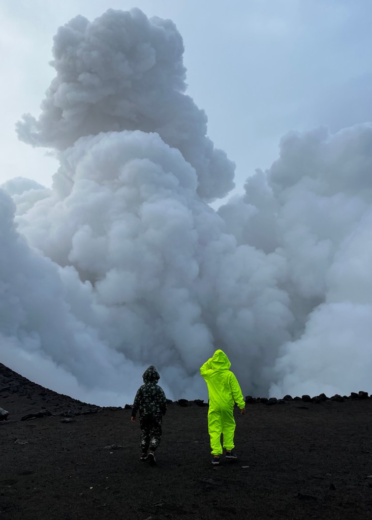 Aan deze kant van het eiland is geen pinautomaat. Local Jack heeft een pick-up en biedt aan ons naar ‘de stad’, Lenakel, te rijden. Het wordt de meest epische rit naar een pinautomaat die we ooit zullen meemaken. Met een wagen volgeladen racen we over de asvlakten van vulkaan Yasur. We rijden door haar stromende water, tussen wanden van uitgesleten klei en gesteente. We rennen over haar flanken, voelen hoe haar as onze voetzolen kietelt en de rook onze adem beneemt. We kijken hoe ze boven ons uittorent en ons grommend verwelkomt.