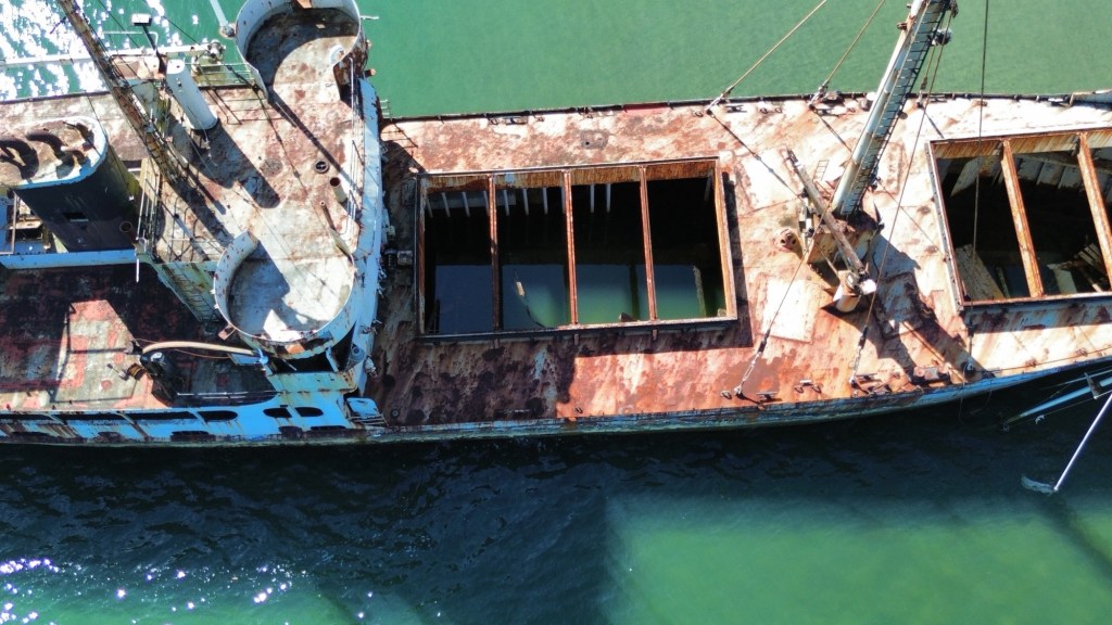 In de beruchte Shark Bay, waar vroeger het ‘afval’ van geslachte runderen aan de haaien werd gevoerd, ligt het oude Amerikaanse oorlogsschip USAV FS-313. Gebouwd in 1944, deed het tijdens de Tweede Wereldoorlog dienst als bevoorradingsschip in de Stille Oceaan. Met als hoogtepunt haar deelname aan de beroemde slag om Okinawa, Japan. Na de oorlog voer het nog jarenlang onder de naam Betsy Ross in particuliere handen.