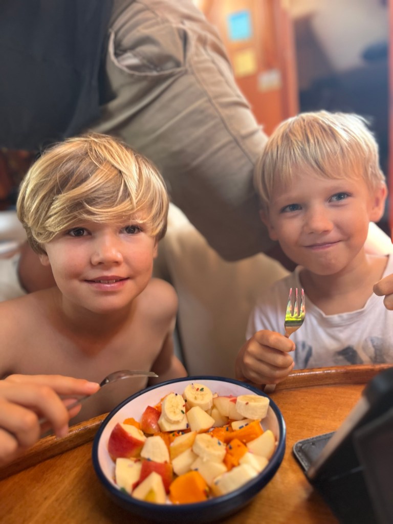 We varen niet vaak met licht weer en wat is het genieten. Niet misselijk wakker worden, geen gestuntel in de kombuis. De jongens mogen vandaag nog lekker schermen maar vanaf morgen hervatten we het schoolritme. Maar niet alle tijd hoeft gevuld te worden. Soms is het juist waardevol om de tijd leeg te laten. Doelloos om je heen kijken, de leegte binnenlaten.
