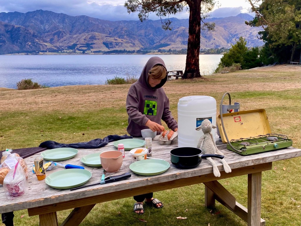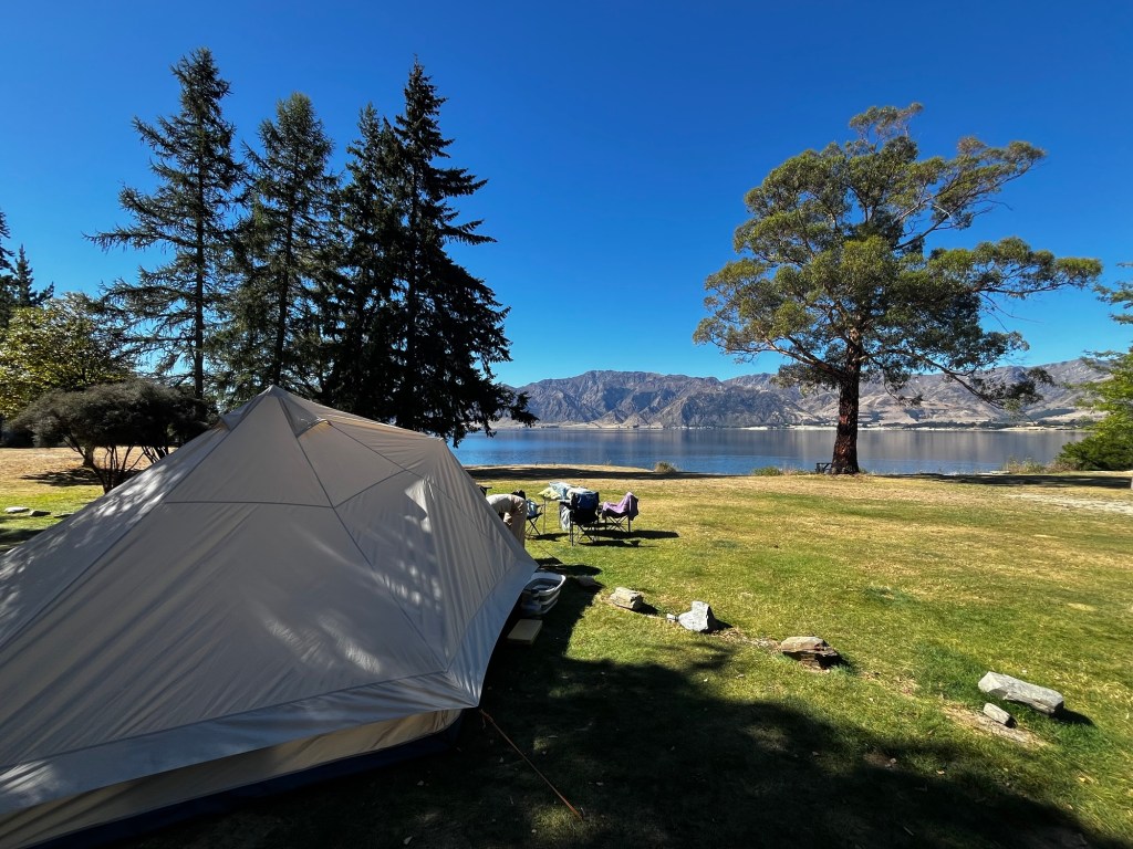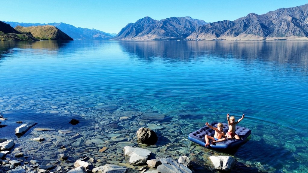 De laatste dagen van de zomer brengen we door bij Lake Hāwea, een uitzicht recht uit een ansichtkaart. Leon en ik boeken een sessie bij de Secret Sauna en keren allebei even naar binnen. De warmte, de stilte, het uitzicht… alles vertraagt.