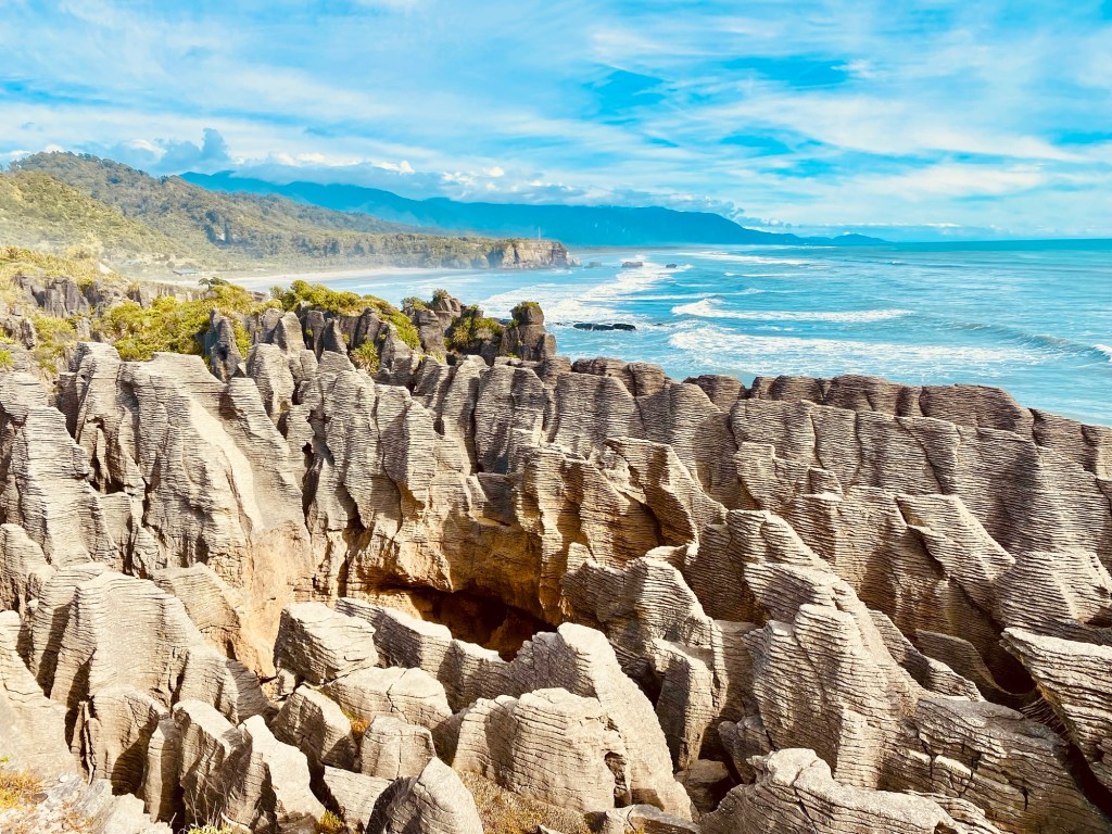 Via de kliffen van de westkust rijden we verder langs de Pancake Rocks en de Hokitika Gorge richting de Franz Josef Glacier. Het land is zó divers dat het bijna niet te bevatten is. Het is zonder twijfel het mooiste land (boven water) dat we ooit hebben bezocht, simpelweg omdat het alles heeft. Watervallen die kunnen tippen aan die van Frans-Polynesië. Alpenlandschappen die doen denken aan de Europese Alpen of de Pyreneeën. Vulkanen zo indrukwekkend als die van de Galápagos. Geisers en warmwaterbronnen zoals in Dominica. Surfstranden, weelderige regenwouden zoals we die in Colombia zagen, en fjorden die zo in Scandinavië thuishoren. En dan zijn we hier nog niet eens in de winter, wanneer het hele land verandert in één groot skigebied.