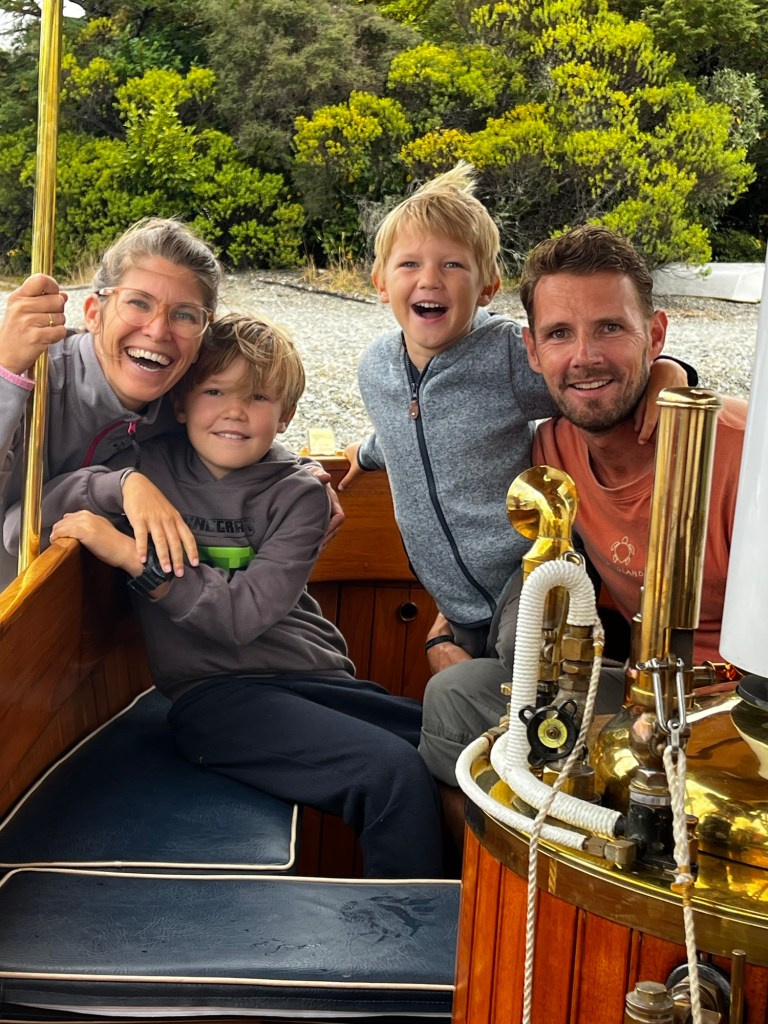 Nelson Lakes National Park had overigens nog een verrassing voor ons in petto. Gisterochtend, vóór de hike, gingen we nog even snel douchen bij de campsite aan het meer. Daar bleek een classic boat-event gaande. We namen een kijkje aan de waterkant, waar een stoomaangedreven boot te water werd gelaten. Onze ogen werden groot bij het zien van deze bijzondere machine. De enthousiaste eigenaren nodigden ons spontaan uit om een rondje mee te varen. Dat slaan we natuurlijk niet af.