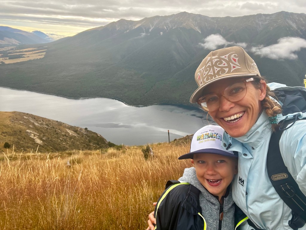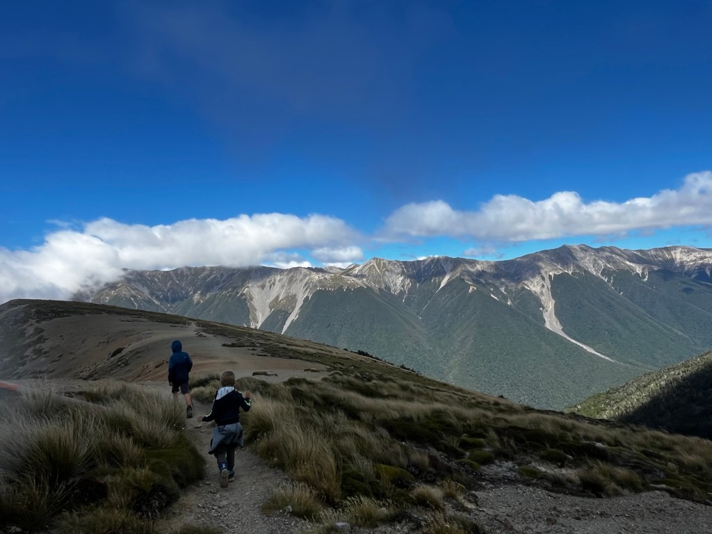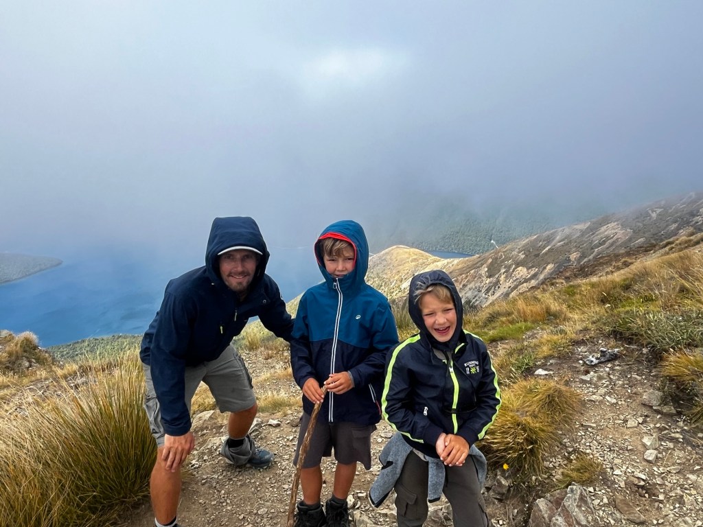 ,,Mama, mag ik je handje?”, vraagt Bruis. Tussen de wolkenflarden door zien we links Lake Rotoiti. Rechts van ons begint de Saint Arnaud Range, een uitloper van de Zuidelijke Alpen die als een ruggengraat door het hele Zuidereiland lopen.