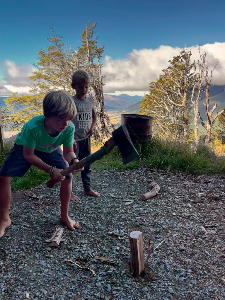 In een schuurtje achter de hut ligt hout. De jongens hakken het in blokken om later op de avond de houtkachel aan te steken. Een Nederlands-Belgisch stel komt aangewandeld na een vijfdaagse tocht. Het klikt meteen. We eten samen en spelen een potje UNO. De hut is basic, met alleen regenwater, een aanrechtblad zonder kookplaat noch keukengerei, en matrassen. De bedden bestaan uit twee keer zeven matrassen, als een soort reusachtig stapelbed. De trampers slapen boven, wij beneden.