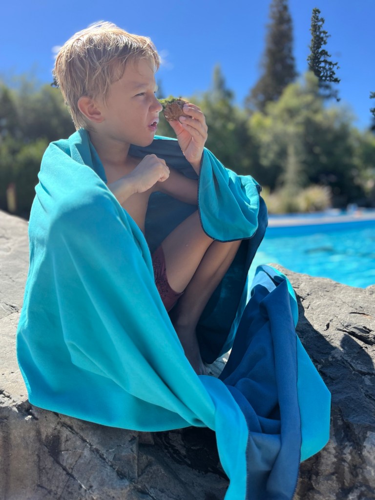 Even later staan we weer buiten, rozig en licht in ons hoofd van geluk, van liefde, van dankbaarheid. De kinderen zwemmen in het helderblauwe meer, terwijl wij met een biertje uitkijken over de bergen.
