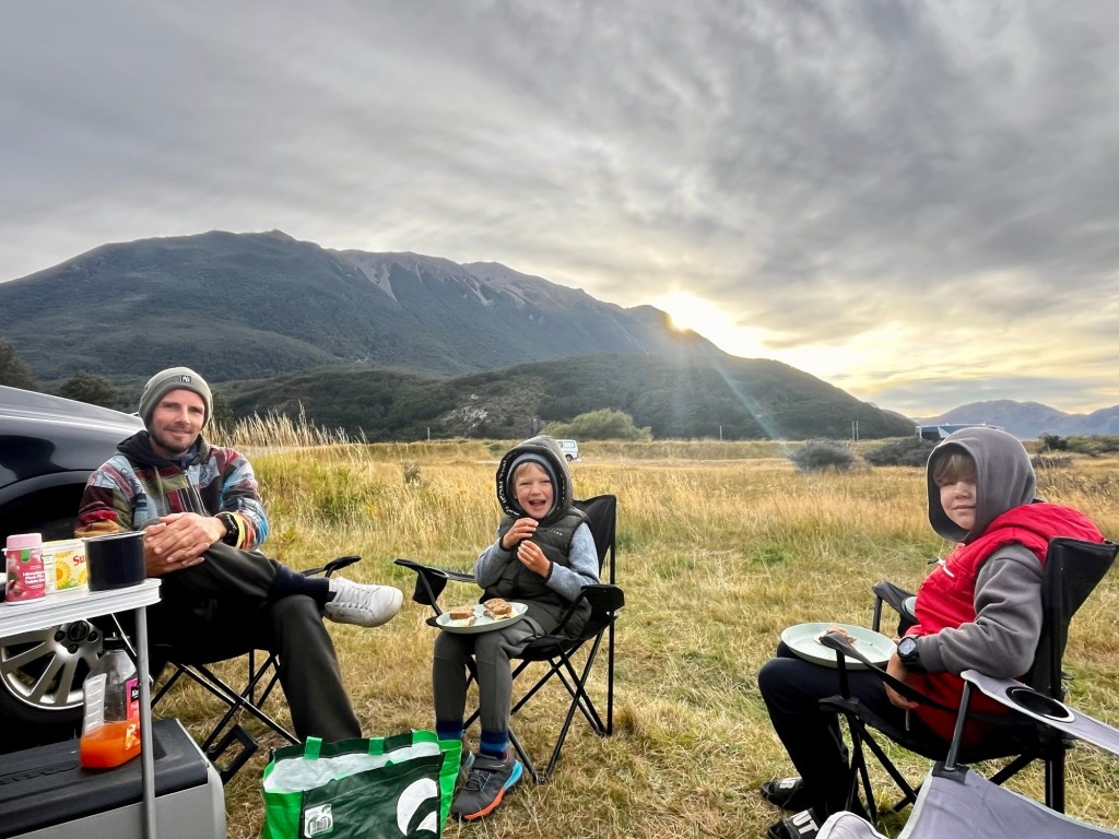 We hadden de Mount Robert Circuit ook in één dag kunnen lopen, maar kiezen ervoor om te overnachten in de Bushline Hut, op 1270 meter hoogte. Een hut voor trampers die dagenlang door de bergen trekken. Voor ons maakt slapen op hoogte het avontuur compleet en de jongens zijn enthousiast.
