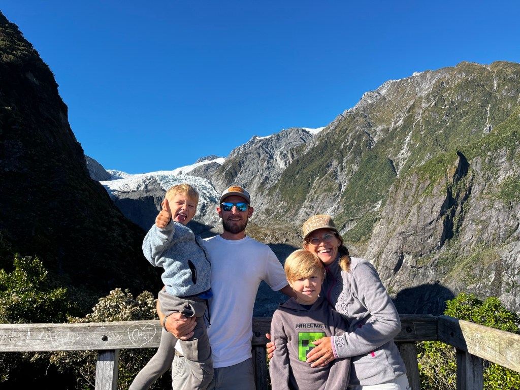 Eén dag eerder stonden we in het dal, op de plek waar de gletsjer 120 jaar geleden nog eindigde. De gletsjer daalt van duizenden meters hoogte af naar slechts 250 meter boven zeeniveau. Die lage ligging maakt hem extra gevoelig voor opwarming. Sinds 2008 heeft de destijds twaalf kilometer lange gletsjer zich dan ook al zo’n 1,5 kilometer teruggetrokken. Het is treurig om te zien hoe ver de gletsjer zich heeft teruggetrokken, en tegelijk bijzonder dat we dit nog samen met onze kinderen kunnen aanschouwen.